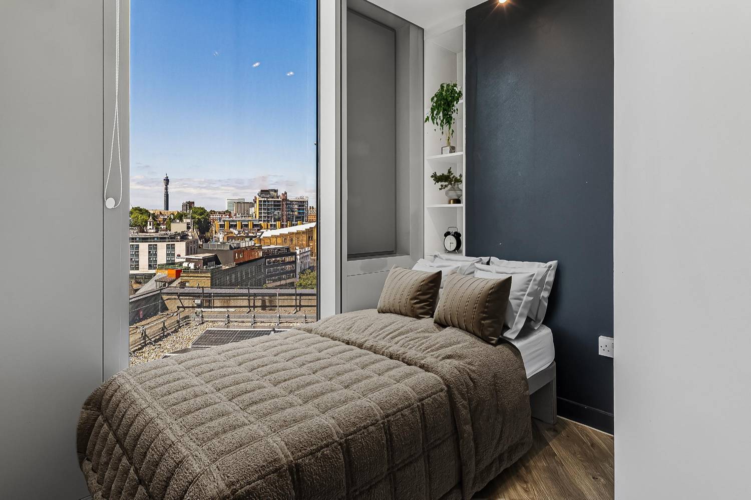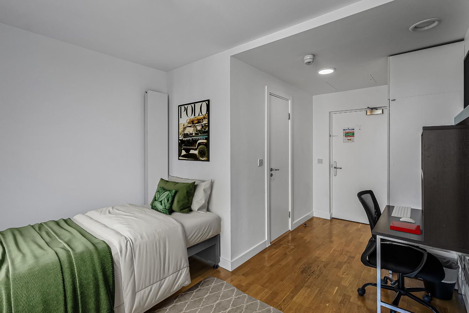 A studio designed to be shared by two people. You’ll each have your own bed, with a shared bathroom and kitchenette. A practical, cost-effective way to live together. Images are for illustration purposes only.