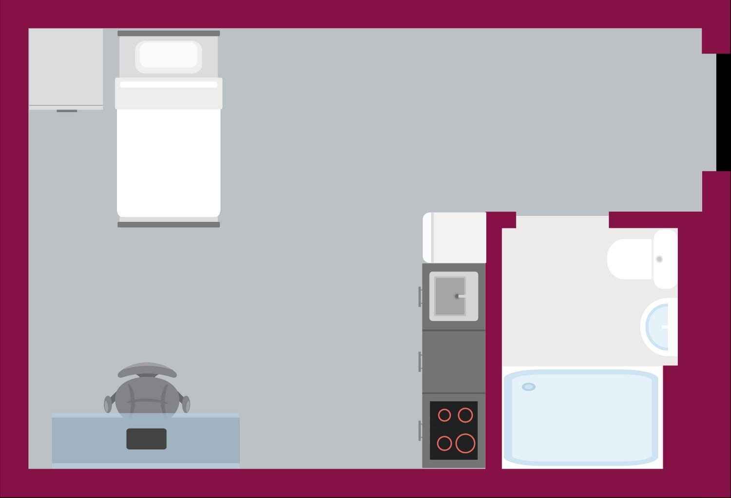 Elevate your living experience in our Gold Studio, featuring 27.48- 28.04 sqm of space. Enjoy a comfortable single bed, a 32” TV, a dedicated study area, ample cupboard space and a kitchen. The fully furnished studio makes moving in effortless, and for added convenience, all Gold Studios come with accessible wet rooms. Explore the building’s communal facilities, including a lounge, coffee bar, and games area whenever you like. Book your studio today so you don’t miss out! Please note rooms may vary in size and layout*