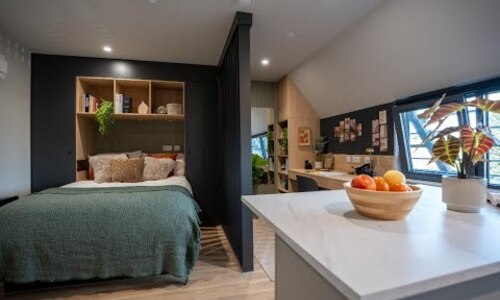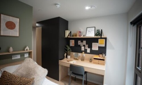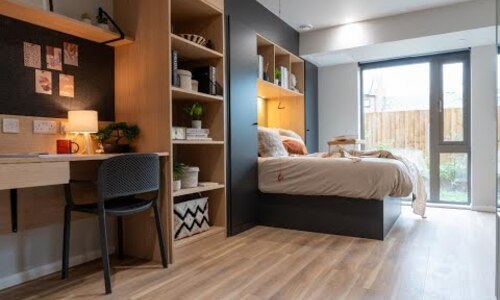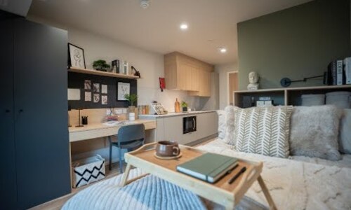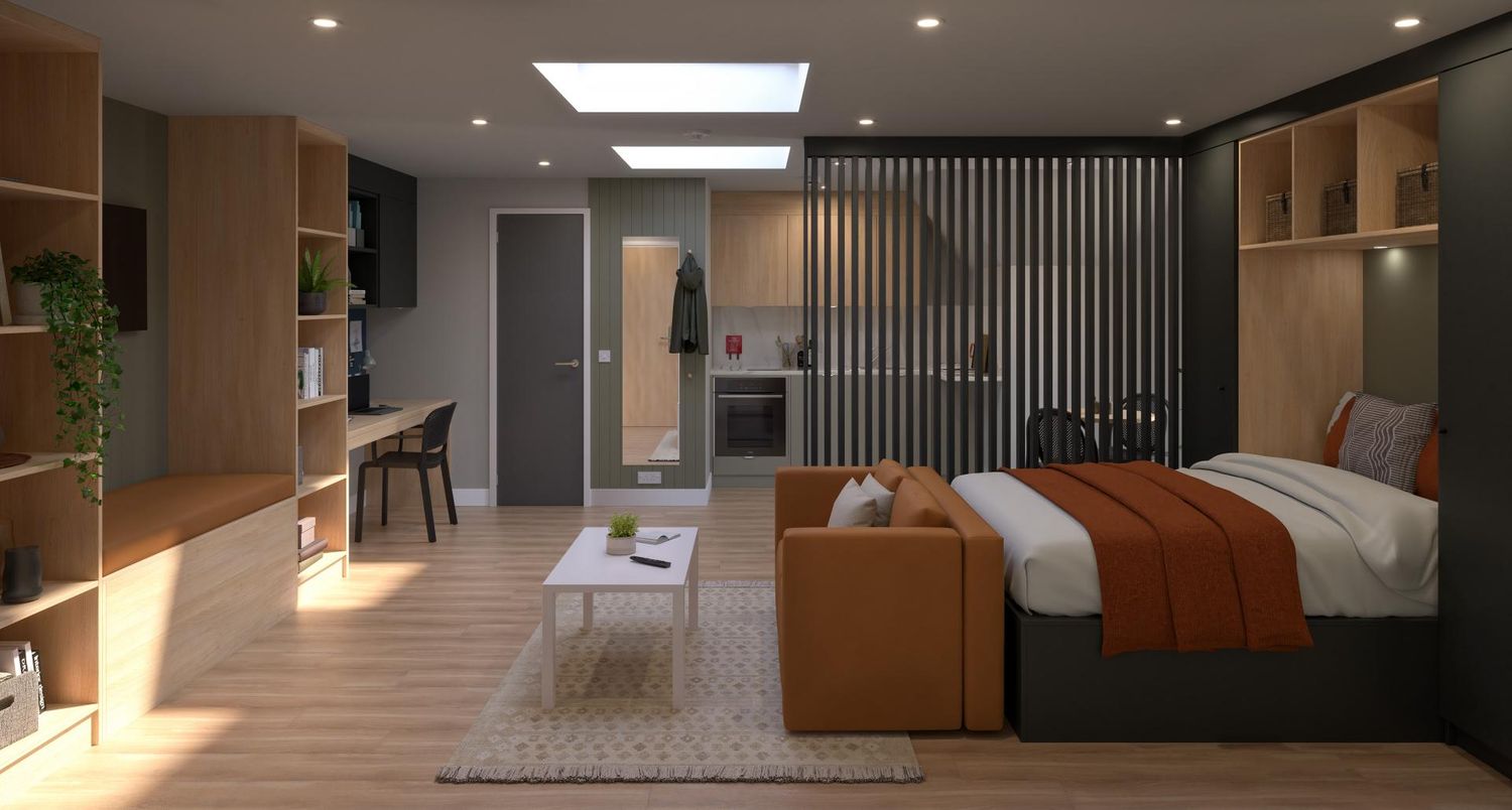 Your personal sanctuary designed for positive living. With calming wood textures and soft pastels, this studio offers a peaceful retreat from busy student life. Thoughtful storage solutions, a luxury en-suite, and a fully equipped kitchenette make everyday living effortless. Whether you’re cooking, relaxing, or hosting friends, every detail helps you feel right at home from day one. All-inclusive utilities and a double bed ensure comfort and convenience, letting you focus on making the most of your university experience.