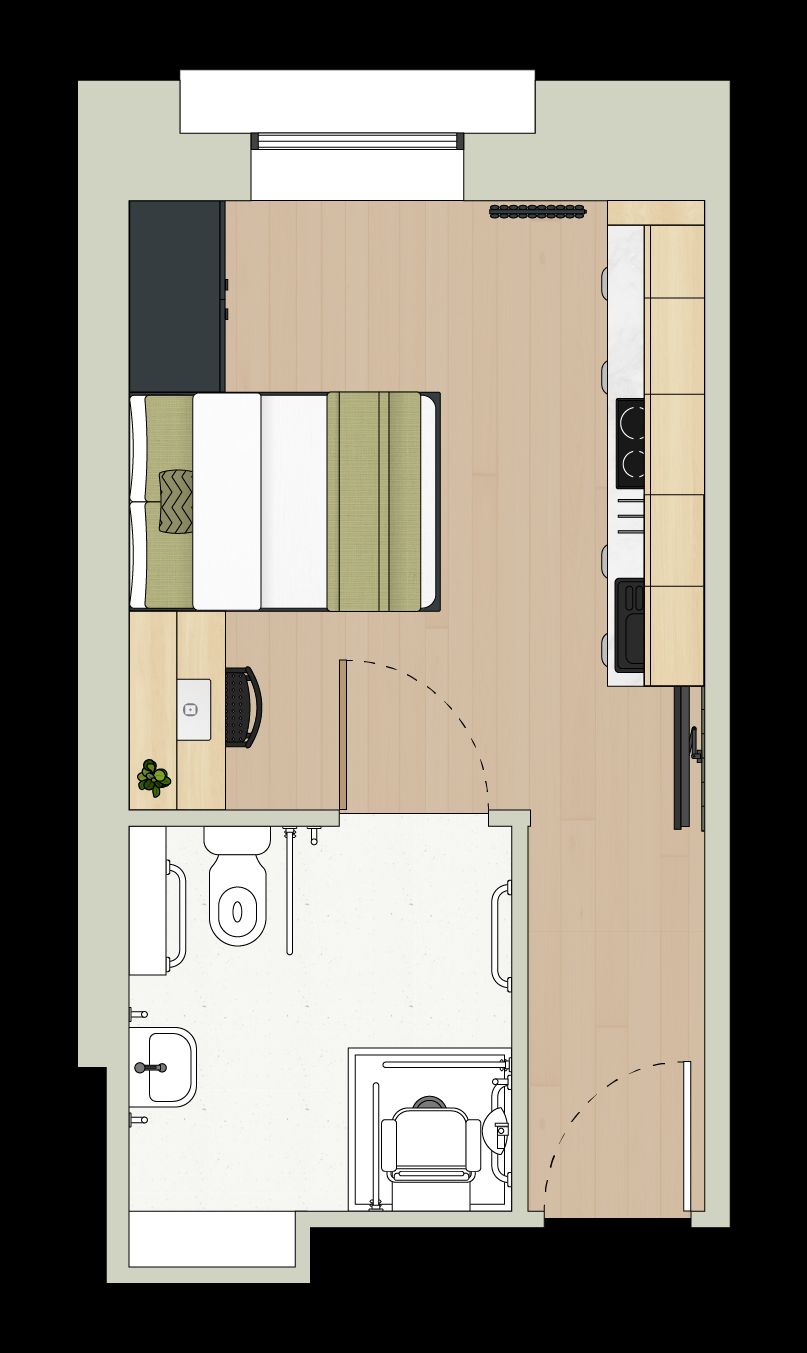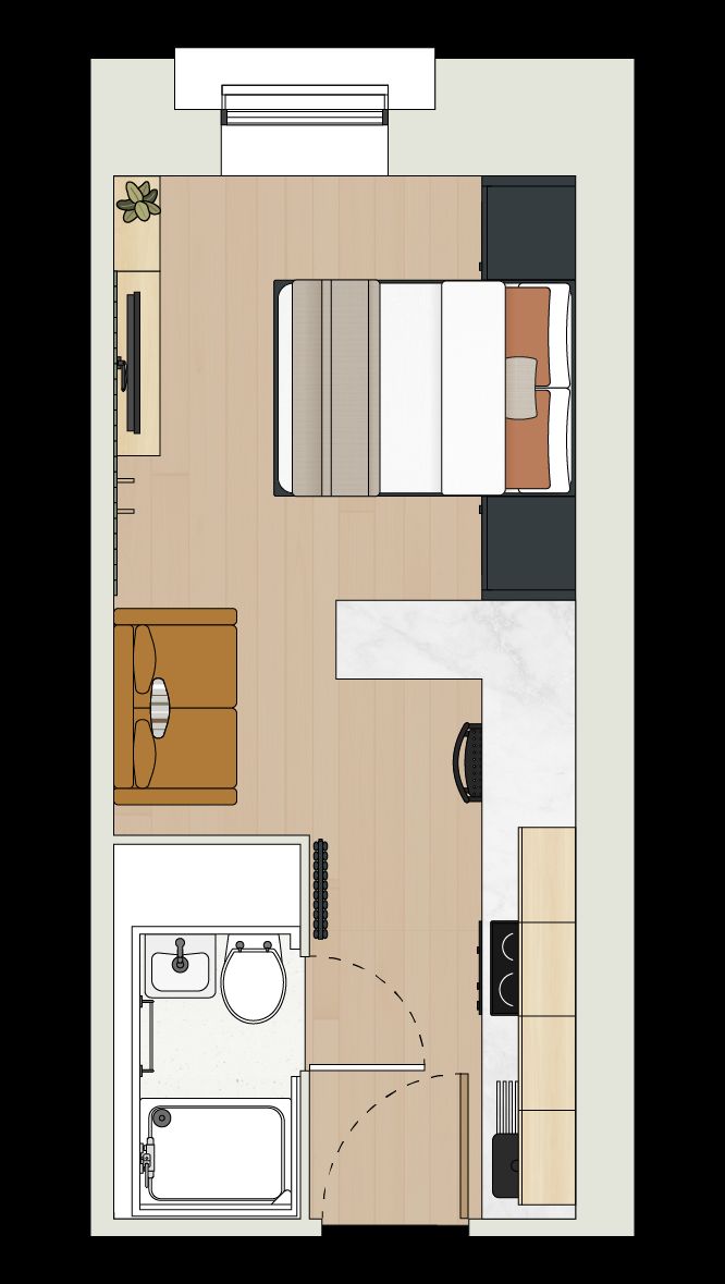 For those who want it all, the Ultimate Studio delivers. Grand and airy, it’s the most spacious option we offer. With distinct living areas, a separated kitchen, and an oversized bathroom, this studio adapts to your lifestyle. It’s perfect for single or dual occupancy, offering room to grow, host, and unwind, while providing all the luxury details you expect, plus that extra sense of openness.