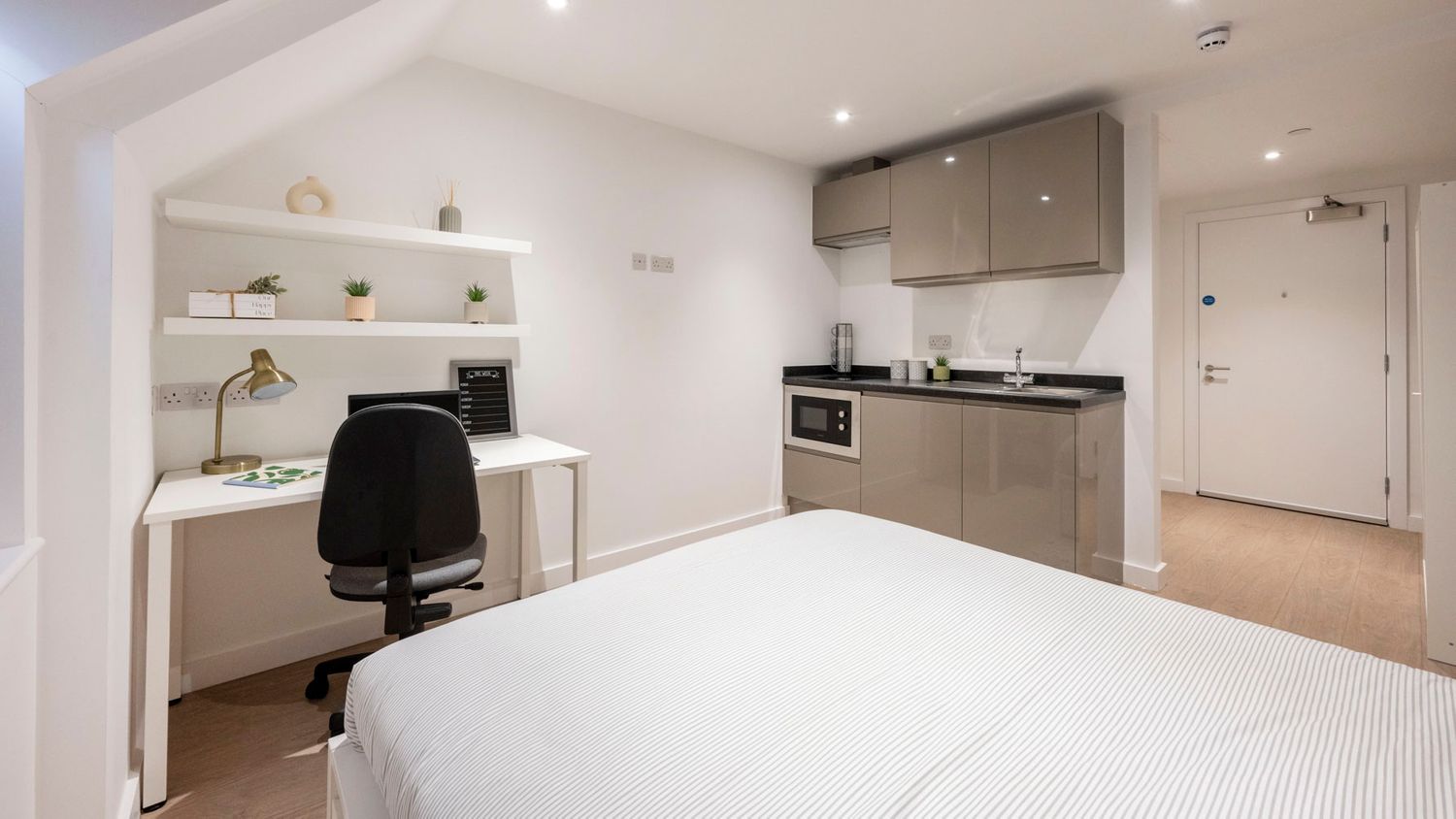 Located on the ground floor and 4th floor, the Classic Studio offers a cosy yet functional living space, perfect for students seeking privacy and comfort. Sizing around 18-19 sqm, this studio features a comfortable bed for restful nights, a dedicated study area with a desk and chair for your academic needs, and ample storage in the wardrobe to keep your belongings organised. The private washroom ensures convenience, while the private kitchen equipped with essentials provides everything you need for cooking your favourite meals. Book your Classic Studio today and enjoy independent living in a cosy and stylish space!