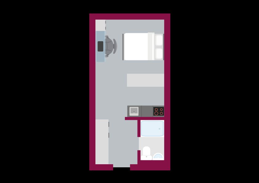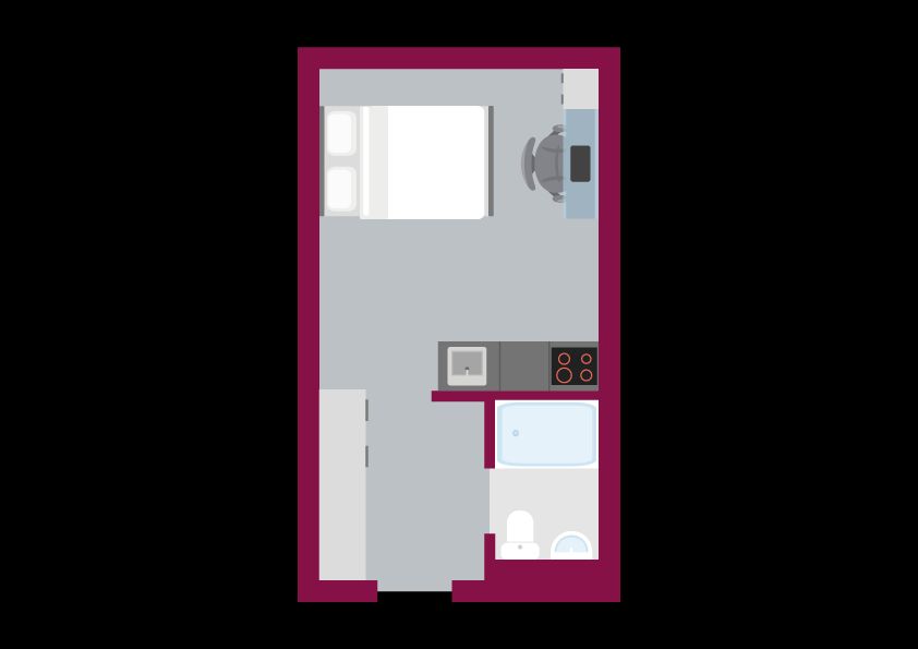 The Accessible Studio is located on the 1st, 2nd, and 3rd floors, offering 31-33.4sqm of space. This studio includes a comfortable bed, a study area with a desk and chair, and ample wardrobe storage for all your belongings. The private washroom is designed to ensure ease of use, while the private kitchen equipped with essentials provides everything you need to cook at your convenience. This studio is a great choice for students seeking a comfortable, accessible, and independent living space. Book your Accessible Studio today. **Double occupancy incurs a surcharge.