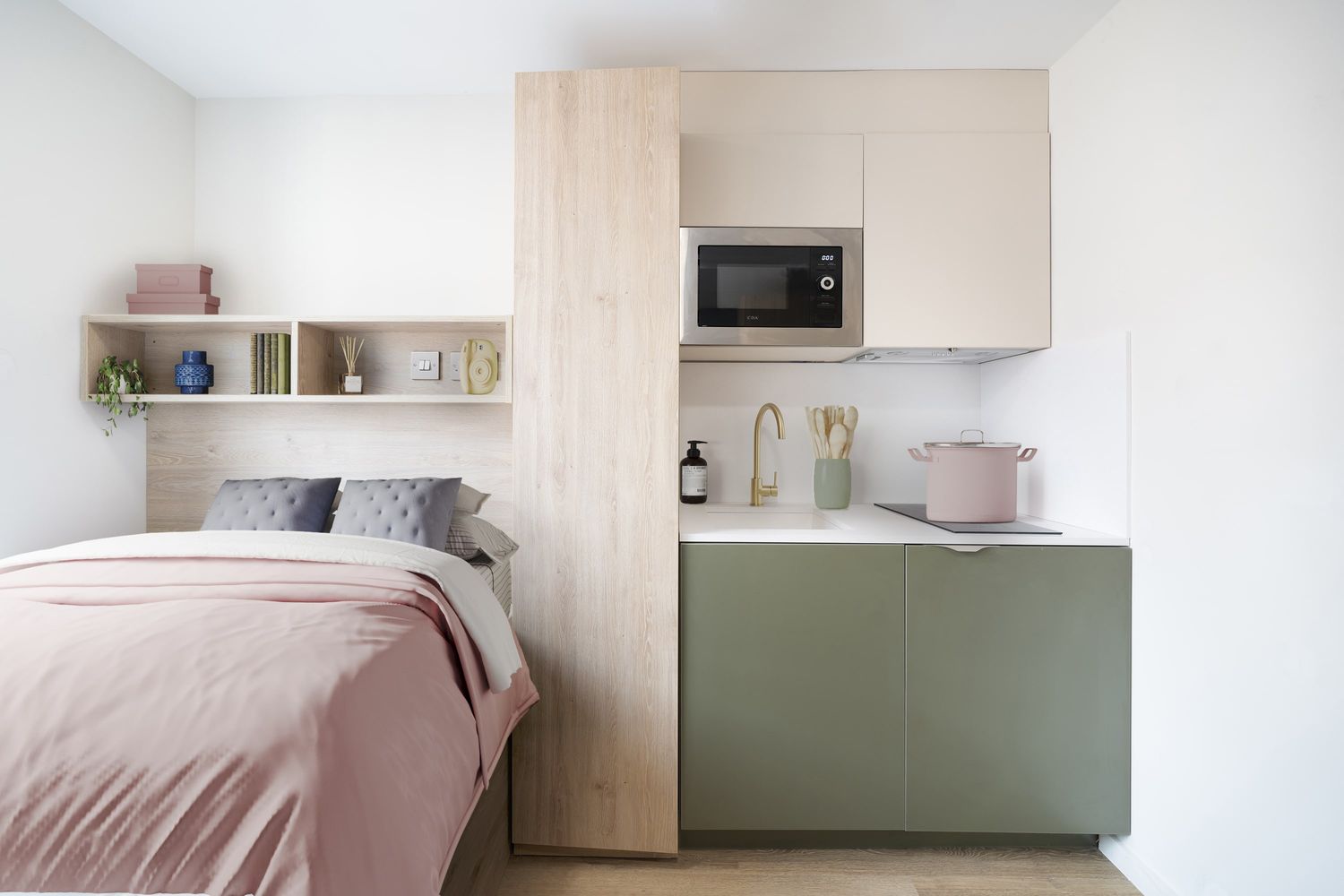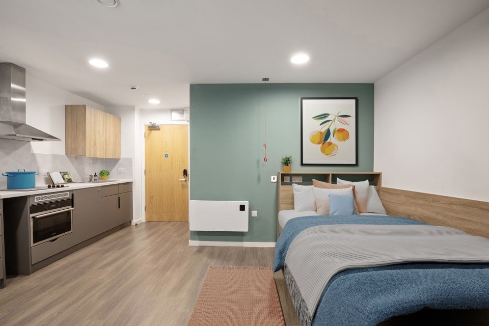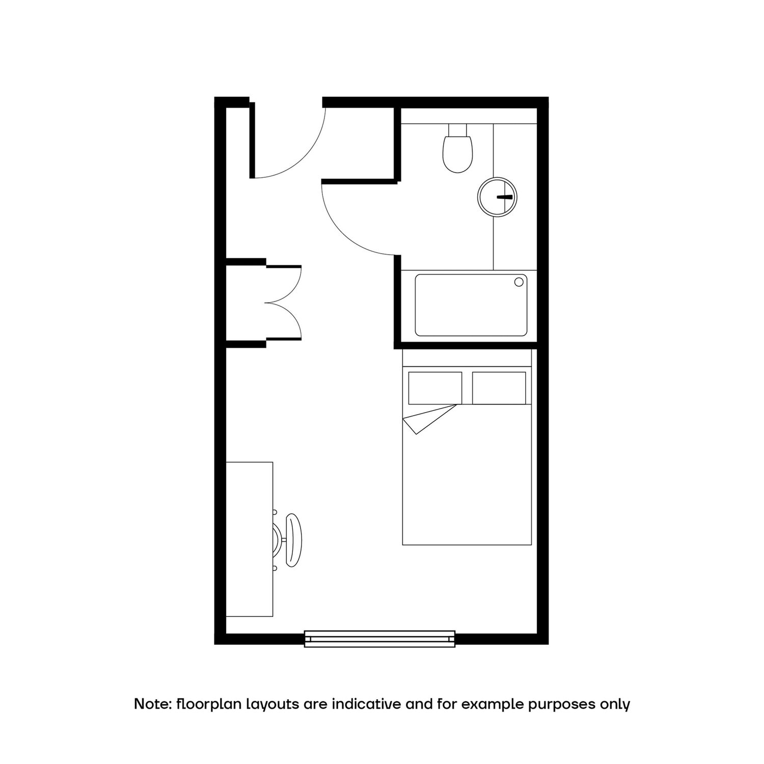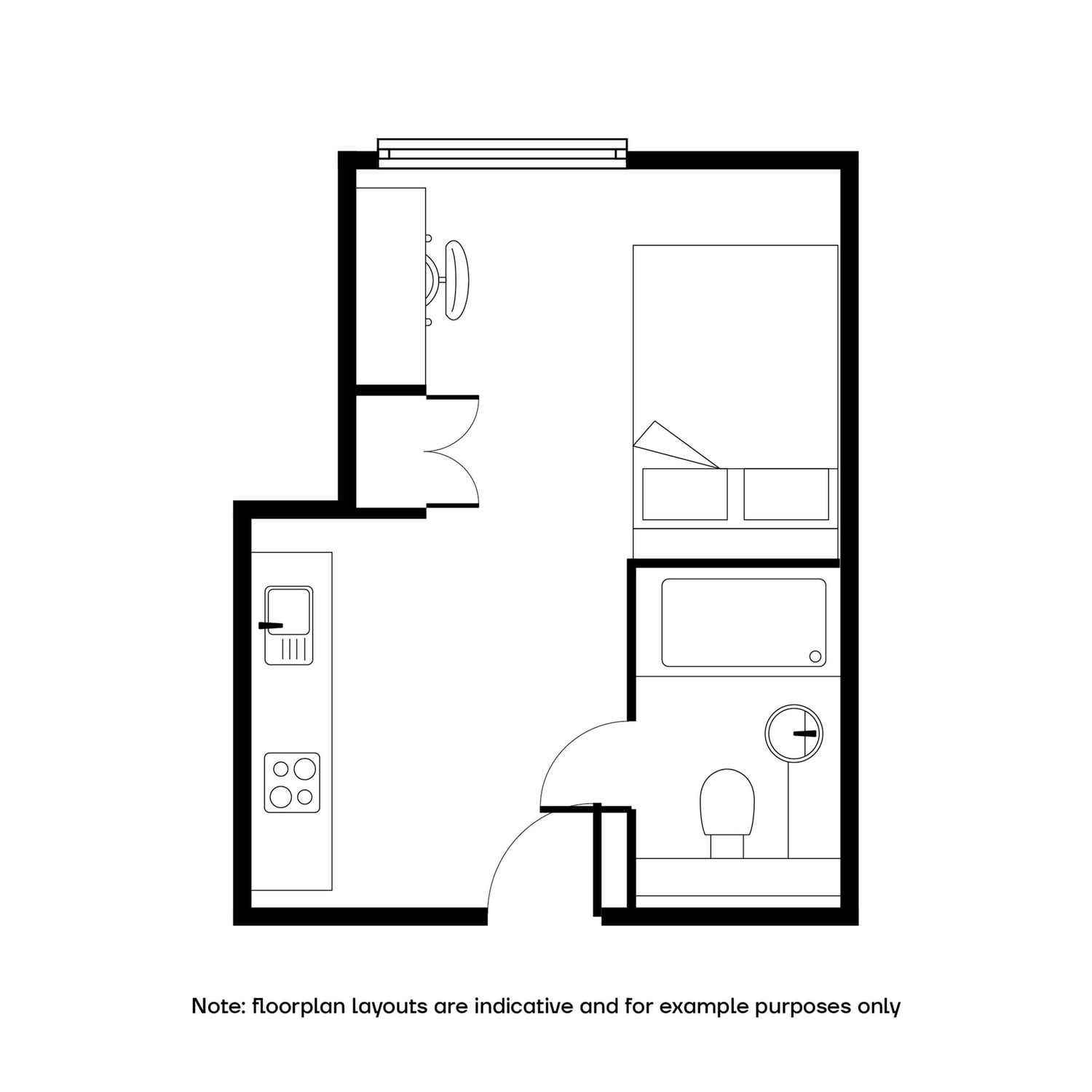 Private bathroom with shower, toilet & basin. Private kitchen with cooking facilities, fridge/freezer & sink. Study desk & chair. Wardrobe & additional storage space.