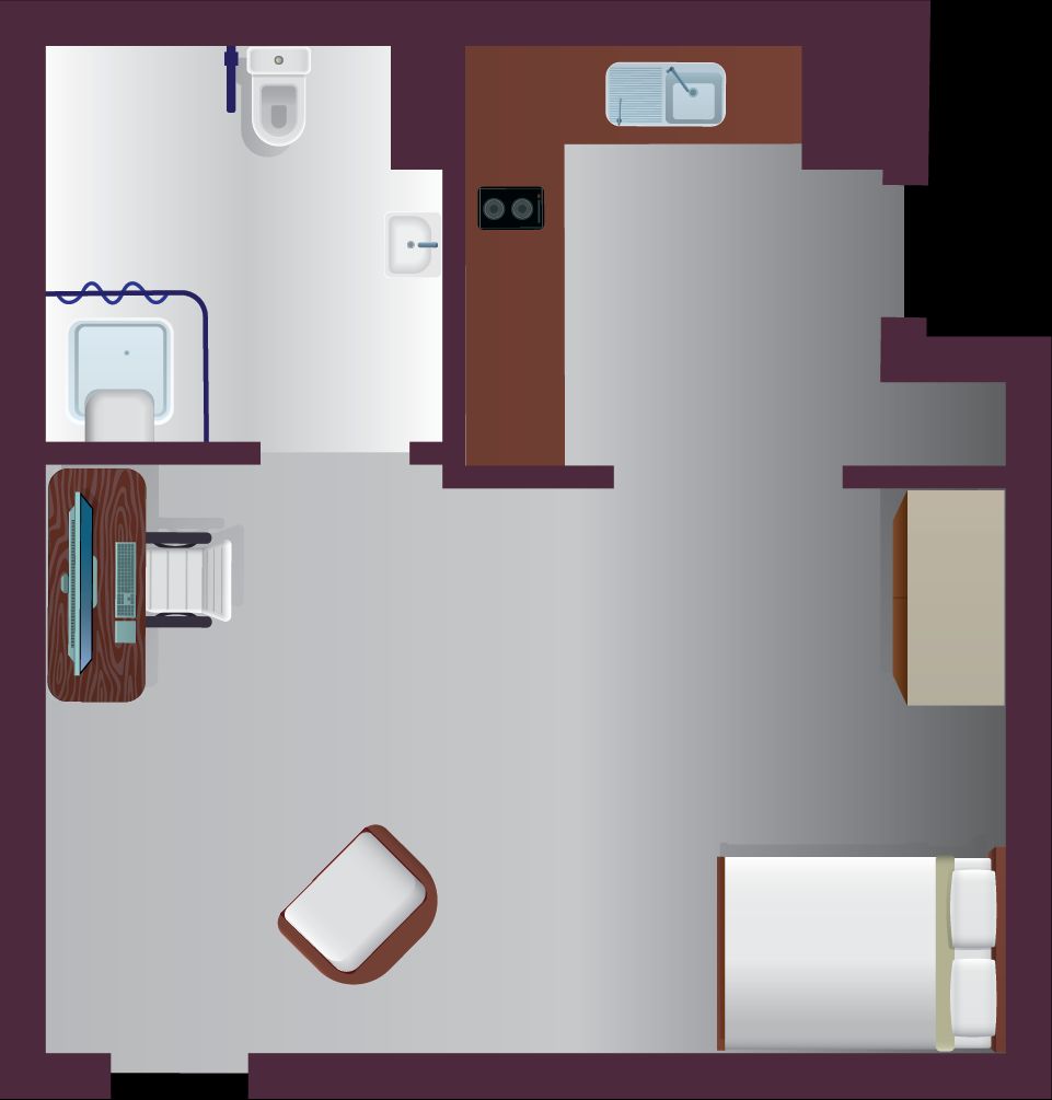 The Standard Studio offers everything you need for comfortable independent living — a ¾ double bed with storage, study area, wardrobe, and a private kitchen with ceramic hobs, combi oven, and fridge freezer. Enjoy your own en-suite bathroom and air-conditioned space designed for both study and relaxation.