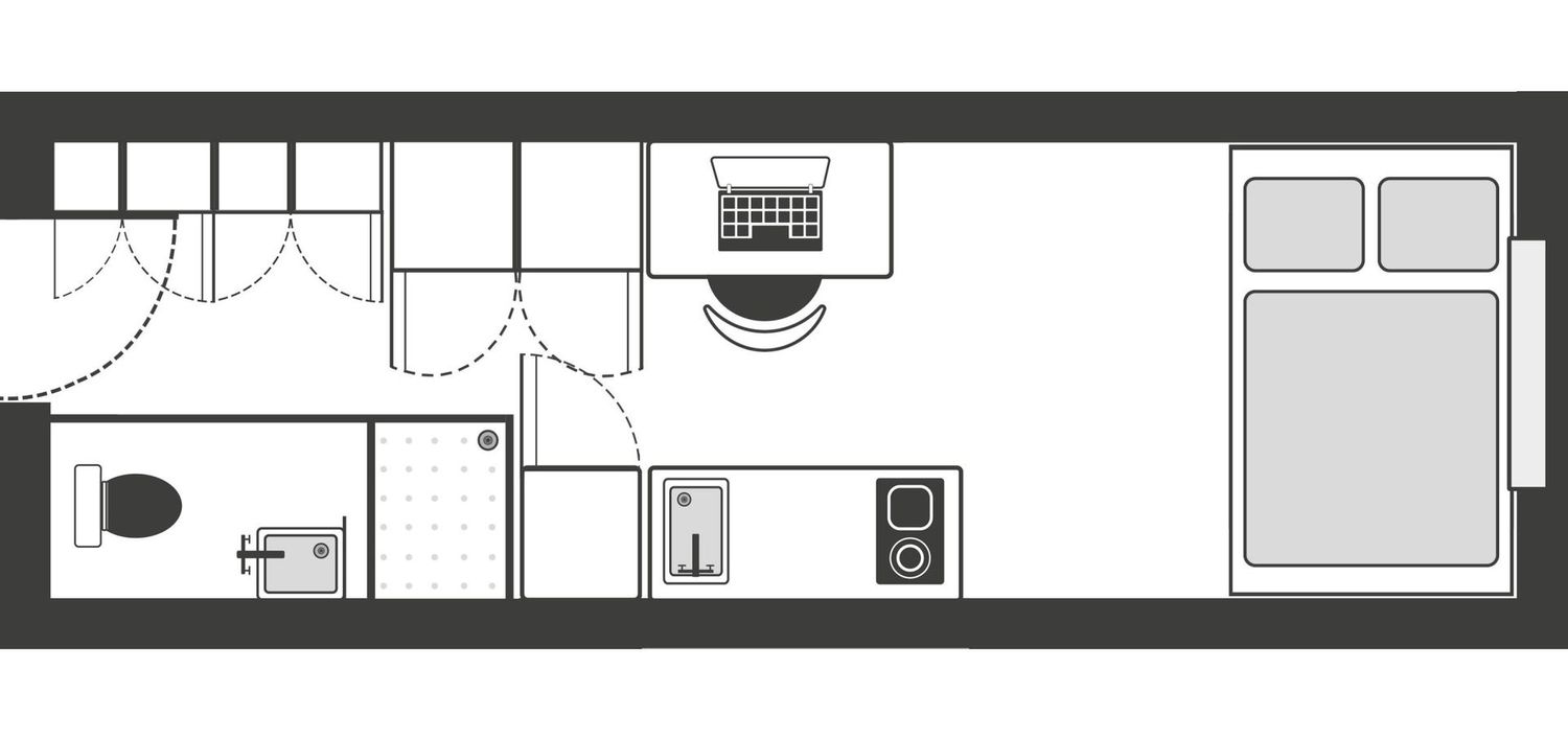 These studios offer a double bed with an adjustable top bed, a dedicated study area, a private kitchenette, ensuite shower room and ample storage. Everything you need for a comfortable and functional stay - all in one space.